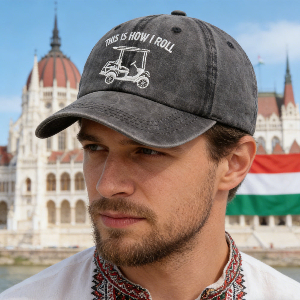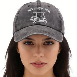 This is How I Roll Golf Cart Hat, Funny Golfers Adjustable Cotton Denim Baseball Cap for Men Women