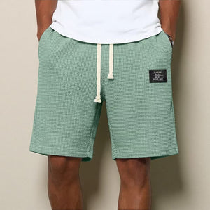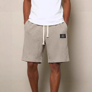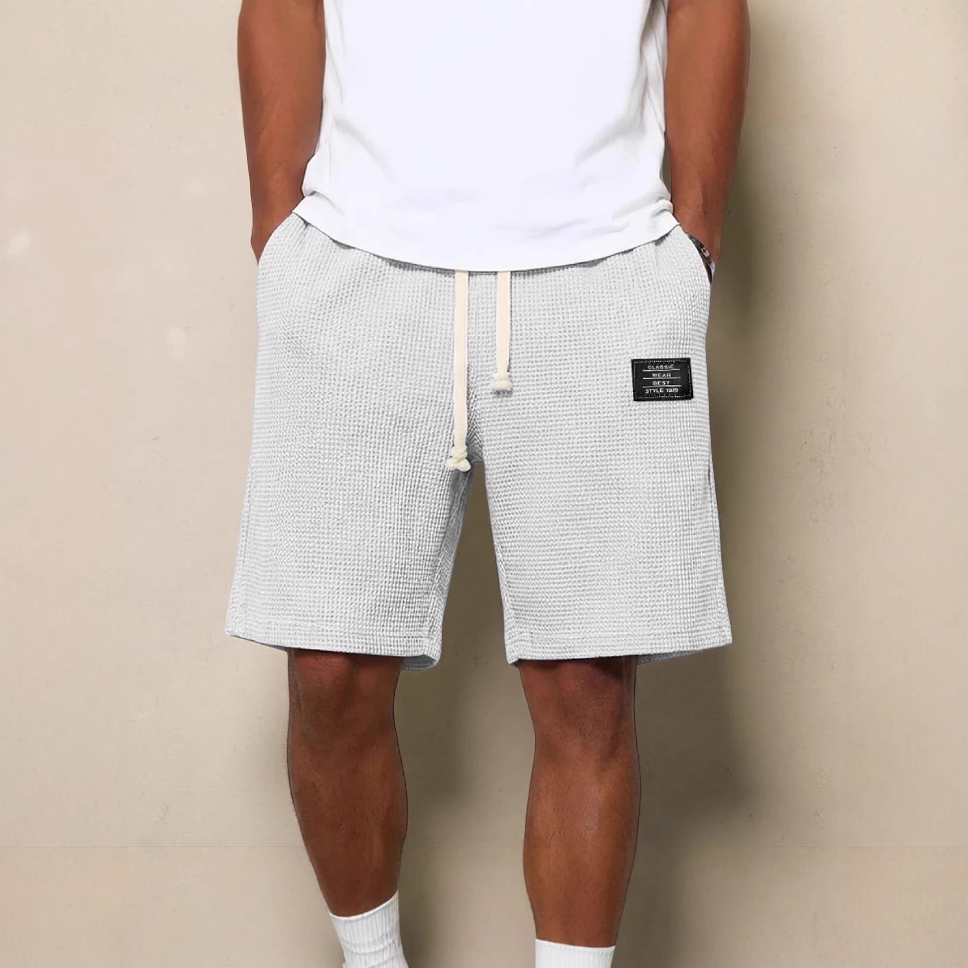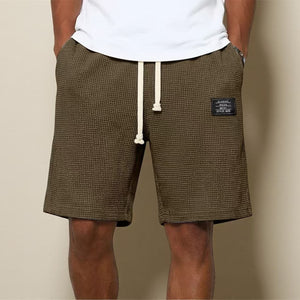 Mens Simple Waffle Knit Embroidered Casual Solid Color Shorts